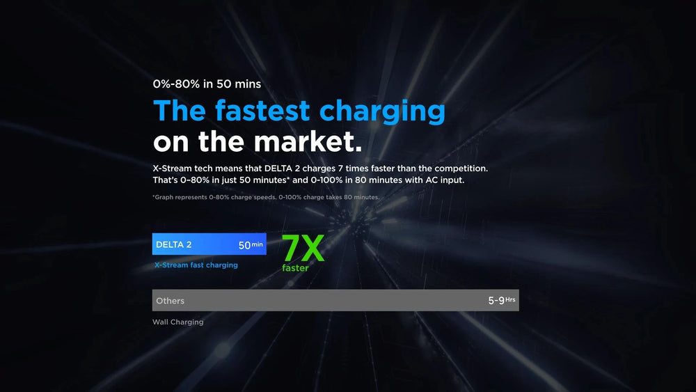 Pair with solar panels and charge in as fast as 3-6 hours with 1x400W, 2x220W portable solar panels. With its MPPT (Maximum Power Point Tracking) smart algorithm, DELTA 2 can actively detect the voltage and current in real-time to reach the maximum power point with >98% efficiency. That means a more efficient charge than other brands.